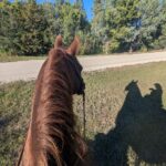 Rusty had lost his mind. He was apparently recovered from the dust issues we had been fighting. He was pawing and tugging at my loosely tied reins. He wanted to go!