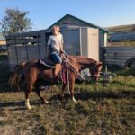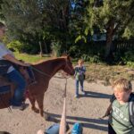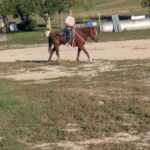 The boys wanted to ride though. Just because there were no girls didn’t have to mean no riding! The boys enthusiastically went out to catch their mounts. We got them saddled, they got on, and started riding around my driveway ‘arena’. I went to get Rusty.