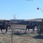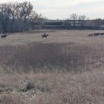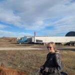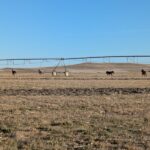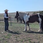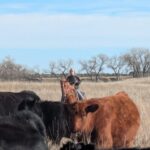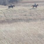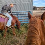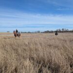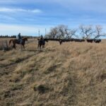 Between knowing the fence was good, the little remaining alfalfa being frozen down to nothing, and nights this week above freezing I’ve felt fairly safe turning the horses out there to graze. It’s half a pivot, so 80 acres? They get more exercise than they do standing in the corrals and best of all no dust! They get a couple few hours in the late afternoon to spend eating and wandering. It seems to be working. The mares are frisky, Rusty can breath, and Sunshine is getting experience in different areas.