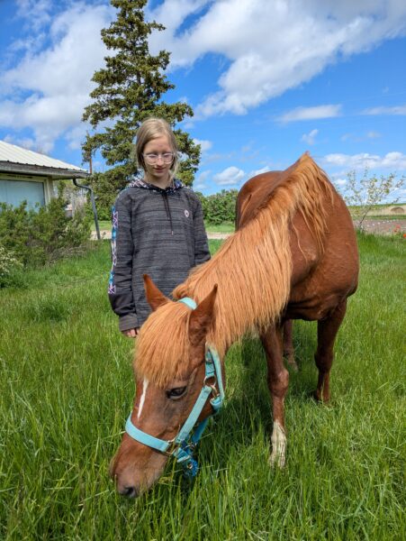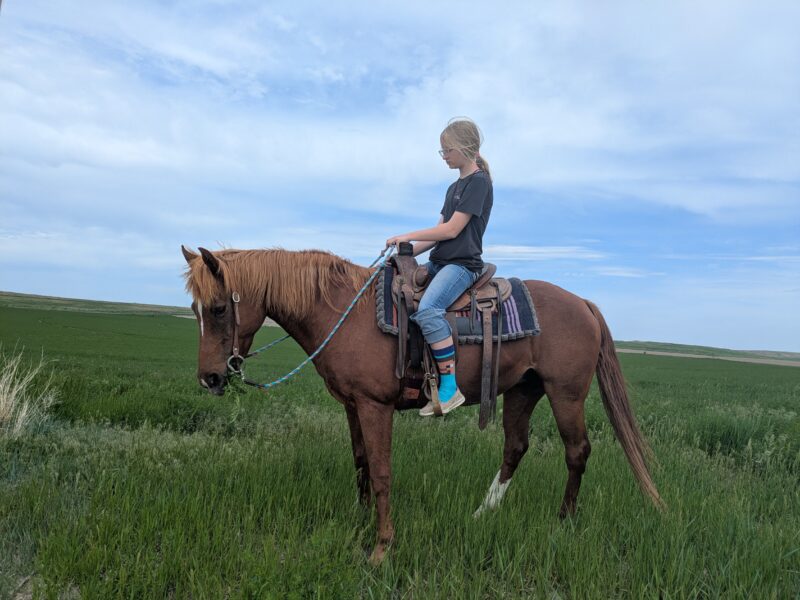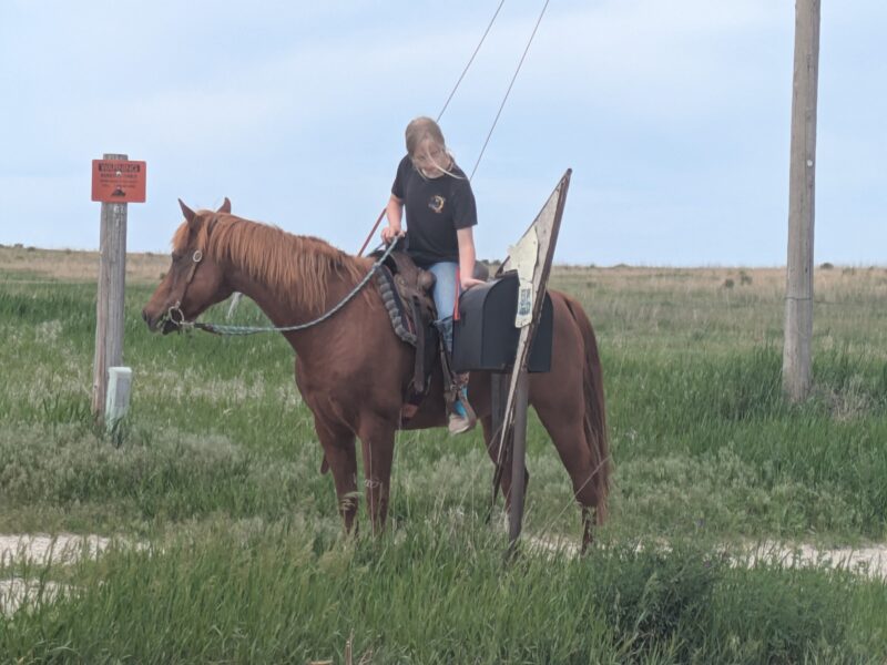 And I had almost put my daughter on him and sent her off. He’s been plodding so quietly, breathing issues helping to keep him slow. Apparently their time grazing out in the hay field has helped! I give it more credit than I do the hours I have spent spraying down the corral to keep the dust down.