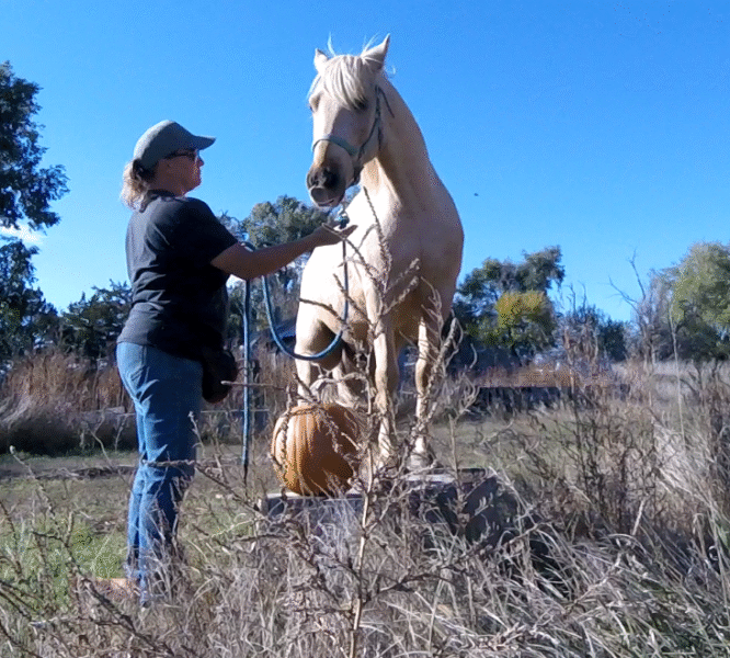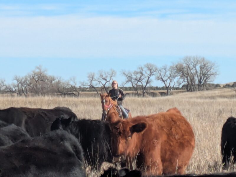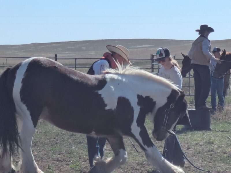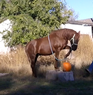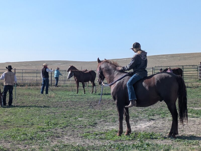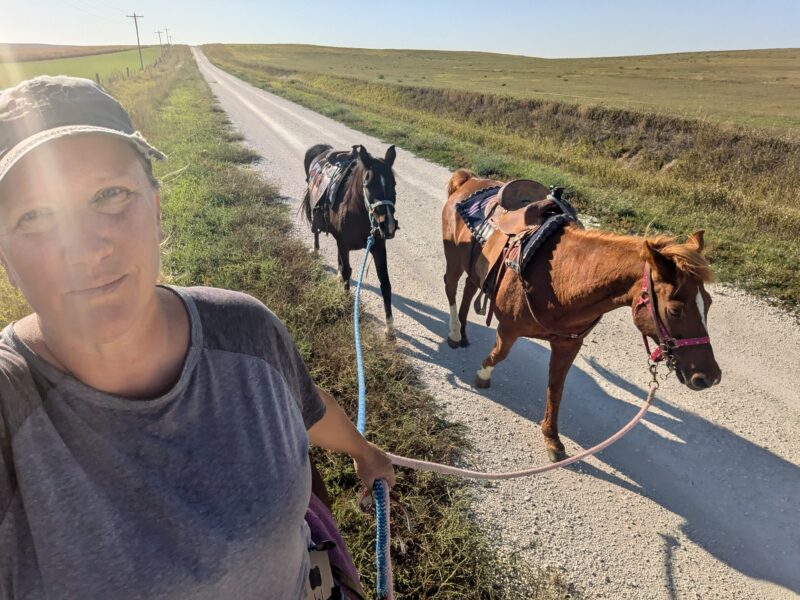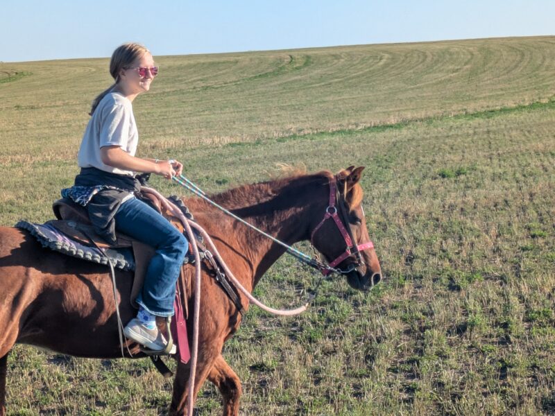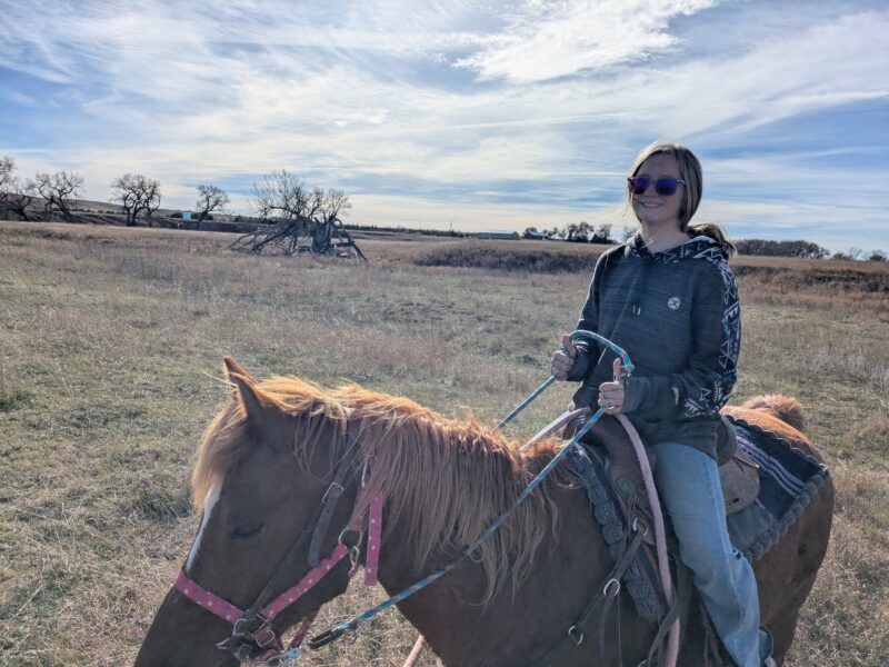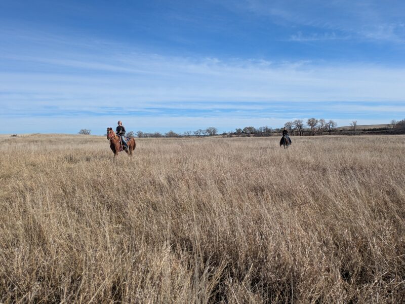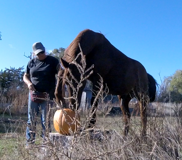 Rusty had fond a spot of good grazing and she was stuck there, unable to get his head up. She likes riding him, but was ready for her own horse back. Yay again! I would get to ride my own horse after all.