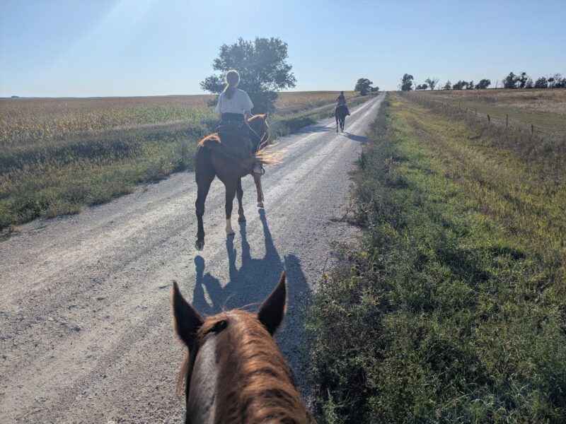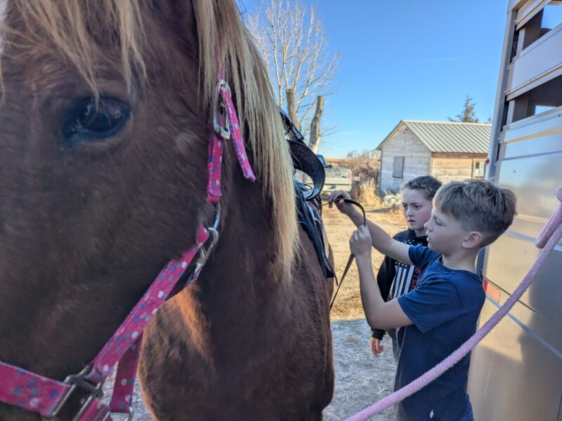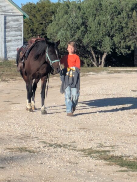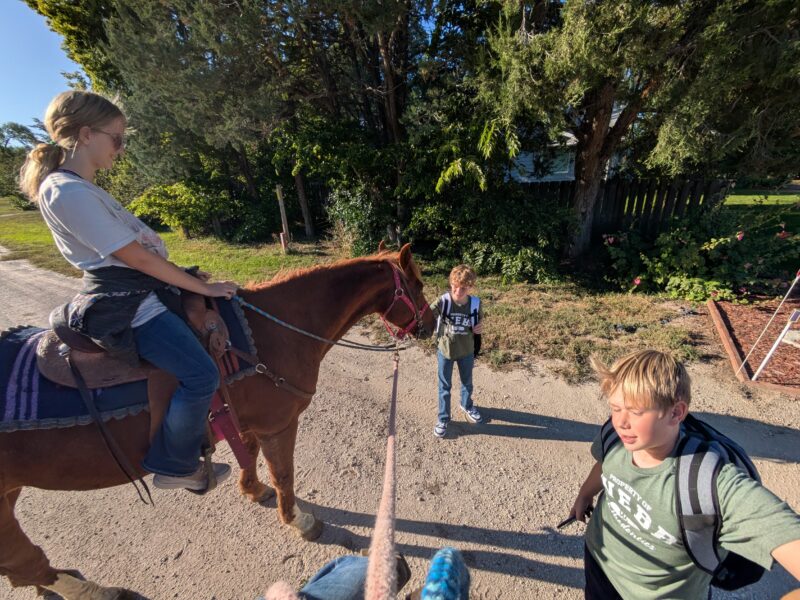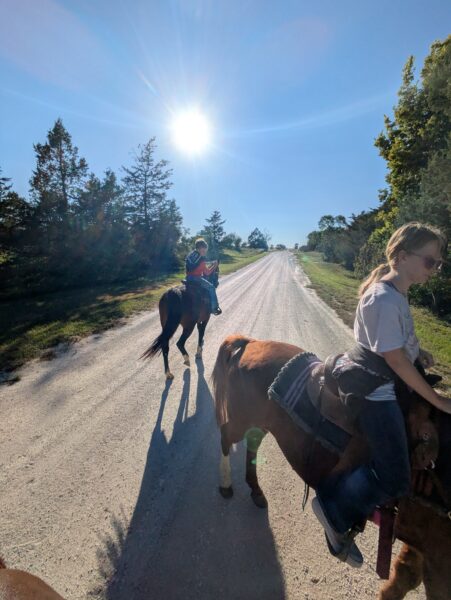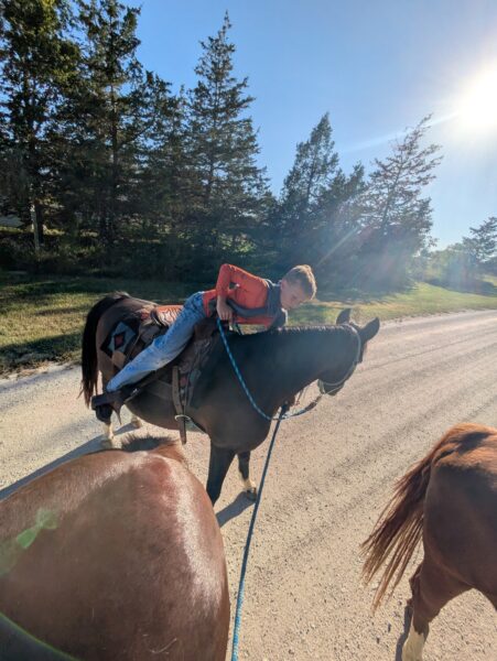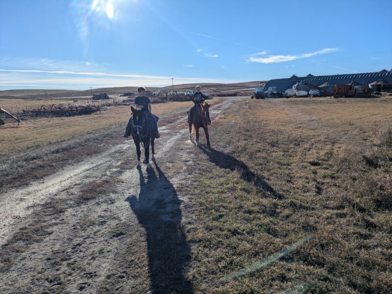 It had started with protests and chaos. My son said he would not go riding. Then I let his mare, Lady, out with Rusty and she left to find better grazing. My daughter came out, I sent her off on Rusty to catch Lady. Before the pair could leave my son came out and went after his own horse. Yay! He wasn’t going to fight riding too hard.