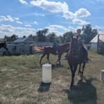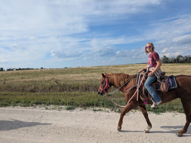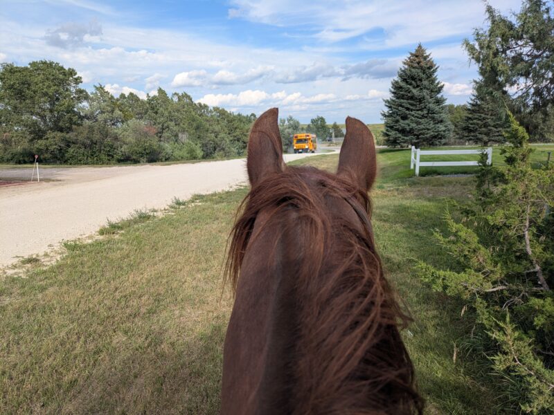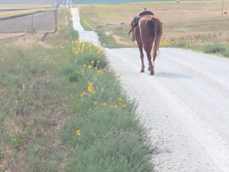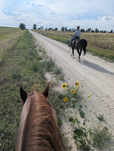 Then he walked off beautifully! We walked to the next cone. He got a cookie. I sat wondering if I should get off there before he decided to spook for real from the wind. We hung out. He took a couple more steps. I got off. Not exciting. More like riding than what we’ve been doing. Still something real colt starters would scoff at and mock. But, I still haven’t gotten hurt. We’re both getting more comfortable. Sunshine is doing great. I’m pretty happy with it for only being six rides and throwing my back out completely somewhere in there. Yes, in days gone by I would have been doing all sorts more things by now. But I’m old and broken. It doesn’t matter what young me would have done. We’re doing what’s best for me in the here and now and I’m happy with our progress.