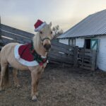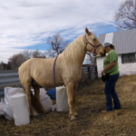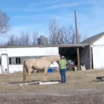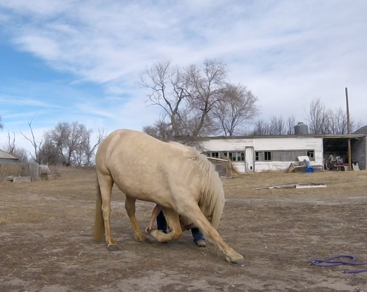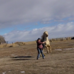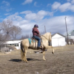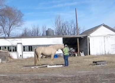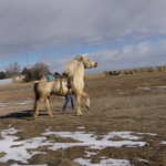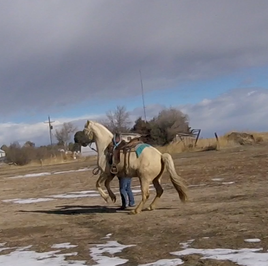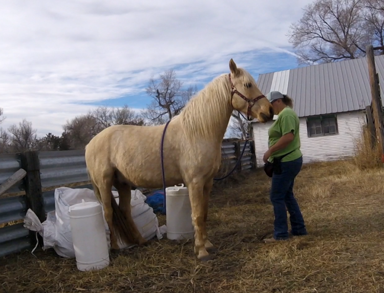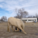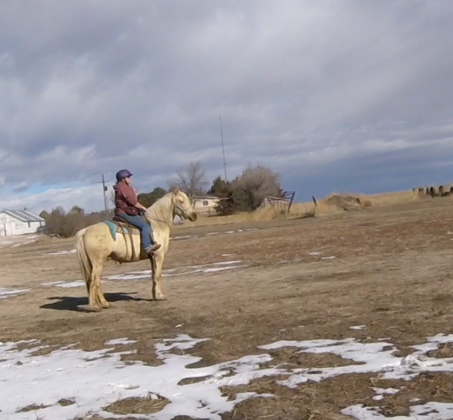Between knowing the fence was good, the little remaining alfalfa being frozen down to nothing, and nights this week above freezing I’ve felt fairly safe turning the horses out there to graze. It’s half a pivot, so 80 acres? They get more exercise than they do standing in the corrals and best of all no dust! They get a couple few hours in the late afternoon to spend eating and wandering. It seems to be working. The mares are frisky, Rusty can breath, and Sunshine is getting experience in different areas.