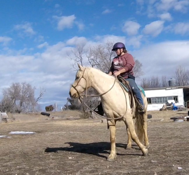 The boys wanted to ride though. Just because there were no girls didn’t have to mean no riding! The boys enthusiastically went out to catch their mounts. We got them saddled, they got on, and started riding around my driveway ‘arena’. I went to get Rusty.